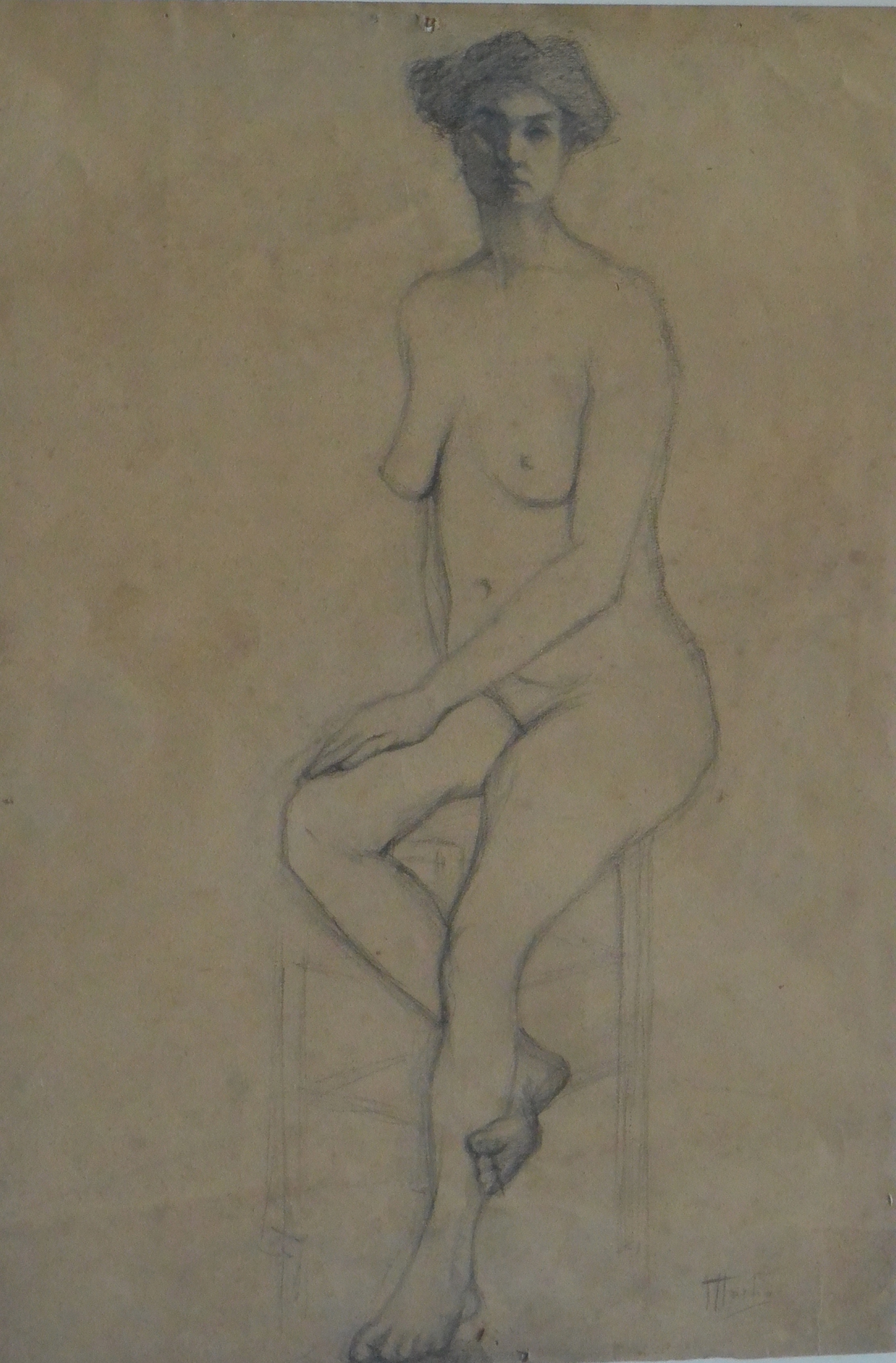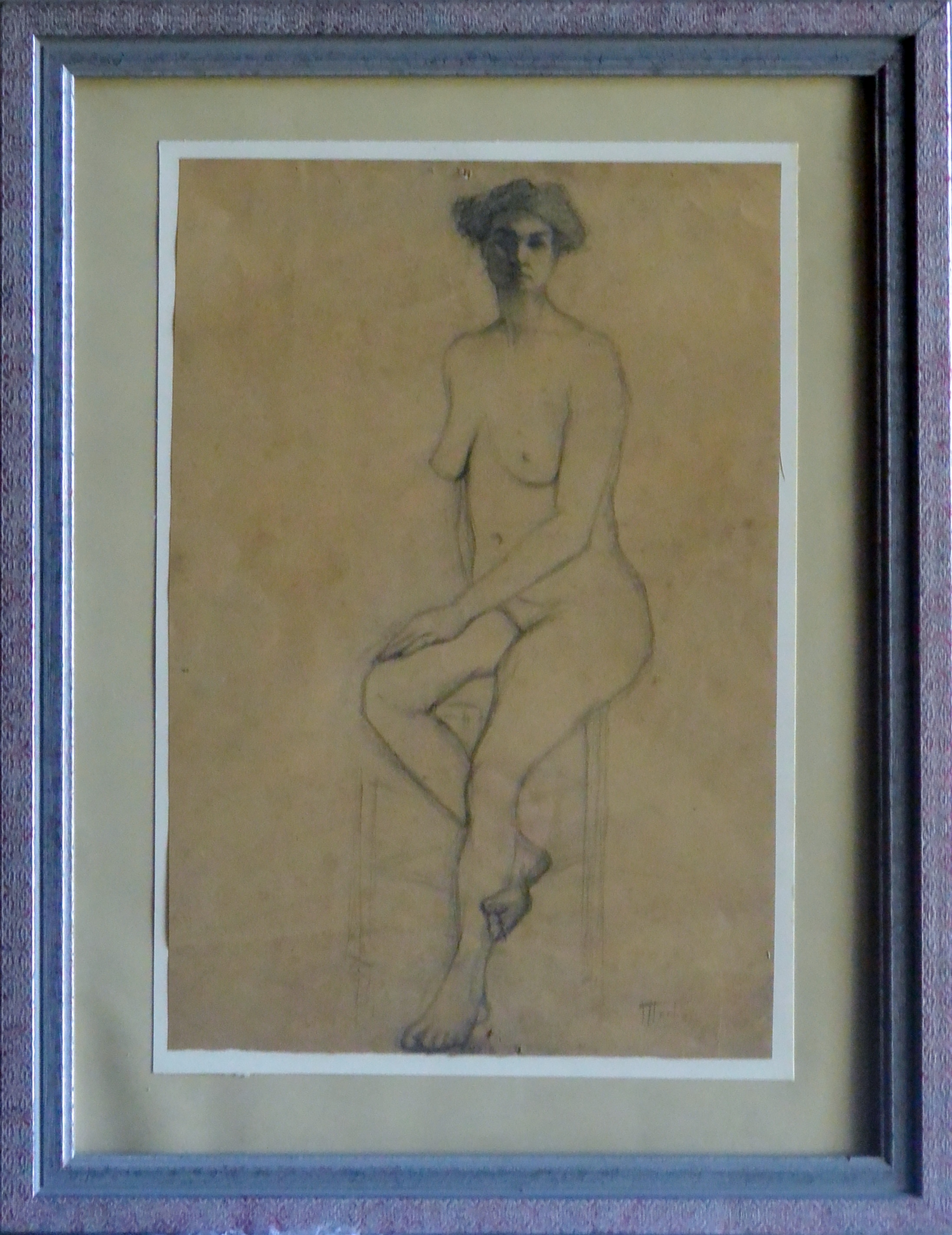 Victorio Macho, Mujer desnuda sentada, dibujo lápiz papel, enmarcado, dibujo 22×32 cms. y marco 35×45 cms.