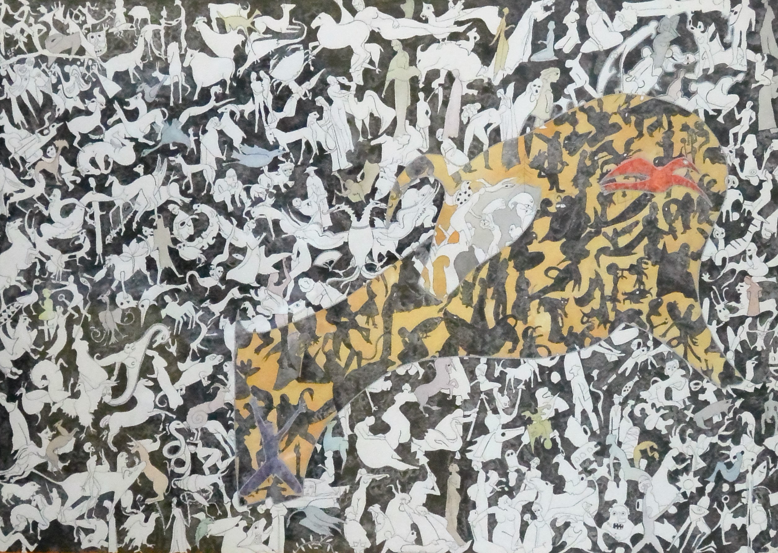 Violeta Monreal, Paraiso, Ilustración original, técnica mixta cartulina, enmarcado , dibujo 46,50×66,50 cms. y marco 63,50×83 cms. Marco incluido